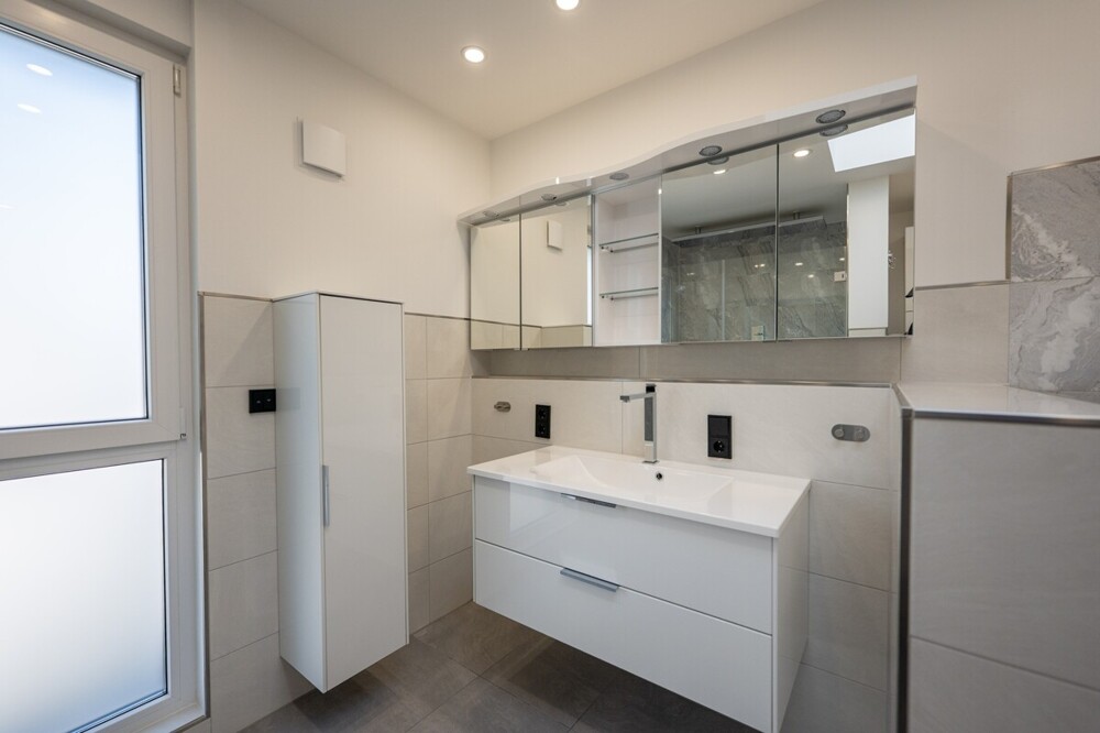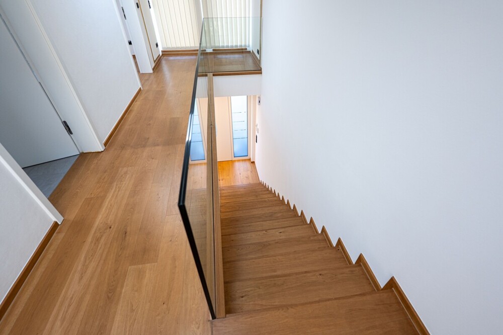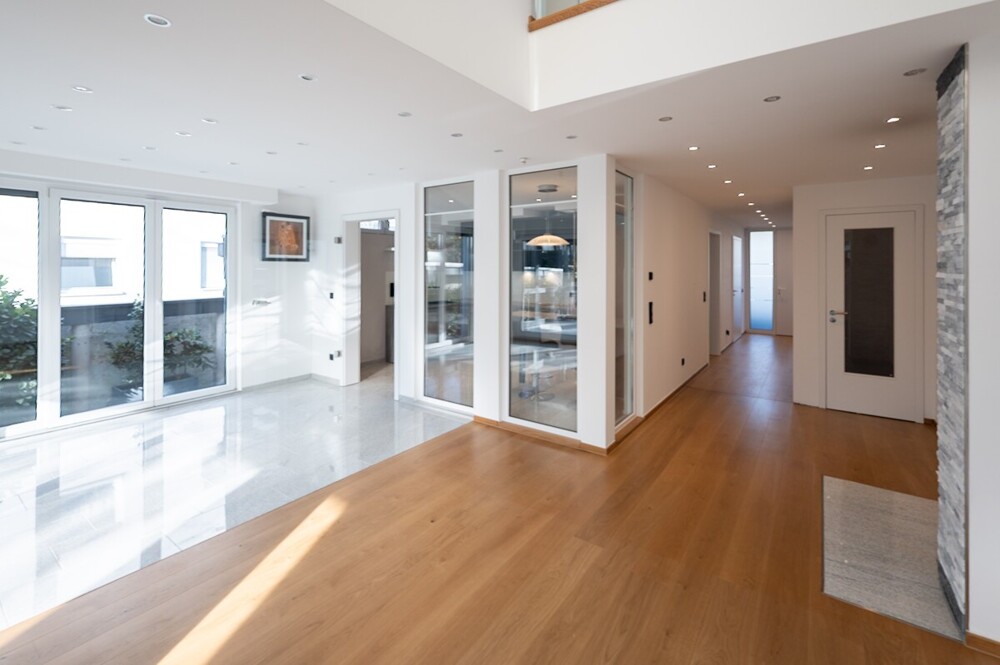 Diese stilvolle Doppelhaushälfte in ruhiger Lage von Bonn-Mehlem vereint modernes Wohnen, hochwertige Ausstattung und nachhaltige Technik. Ideal für Familien, die Komfort, Design und Lebensqualität schätzen. Das Haus begeistert mit einer lichtdurchfluteten Architektur, hochwertigen Materialien und einem klaren, modernen Design. Der großzügige Wohn- und Essbereich mit elegantem Parkettboden schafft ein warmes und einladendes Ambiente. Die hochwertige Einbauküche ist das Herzstück des Hauses – perfekt für gemeinsames Kochen und gesellige Abende. Eine elegante Galerie sorgt für Weitblick und unterstreicht das offene Raumgefühl. Komfort wird hier großgeschrieben: Eine Klimaanlage im gesamten Haus sorgt ganzjährig für angenehme Temperaturen, während die Wärmepumpe und die Vorrüstung für eine Photovoltaikanlage nachhaltige Energieeffizienz gewährleisten. Der angelegte Garten mit Terrasse bietet Platz zum Entspannen, Spielen und Genießen – ein echtes Familienidyll in ruhiger Umgebung. Diese Doppelhaushälfte kombiniert moderne Architektur, hochwertige Ausstattung und umweltbewusste Technik – ein Zuhause, das keine Wünsche offenlässt.