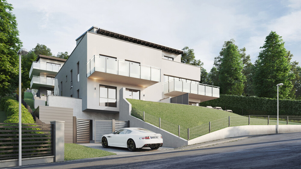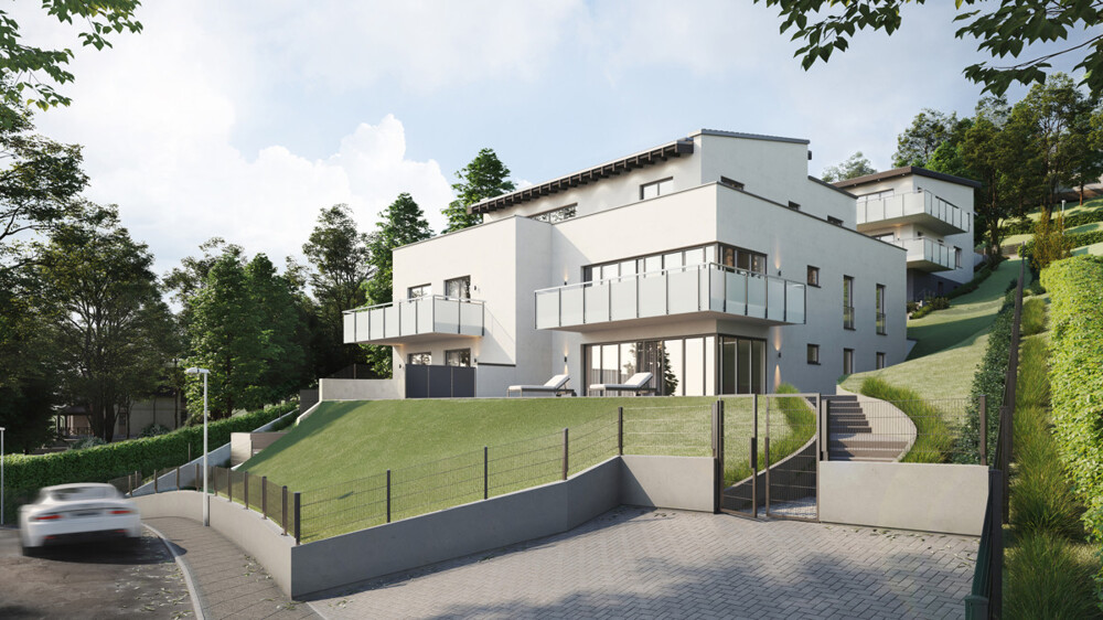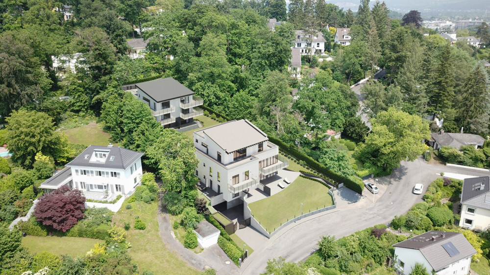Sichern Sie sich eine Wohnung in einer Neubaumaßnahme der besonderen Art! Der Villa-Mende Park, benannt nach dem Vorbesitzer Erich Mende, Vizekanzler unter Ludwig Erhard, der hier für sich und seine Familie in den 1950 er Jahren sein Wohnhaus errichten ließ, entsteht im gefragtem und vornehmen Bonner Stadtteil Schweinheim. Das trapezförmig geschnittene Hanggrundstück mit einer Größe von ca. 1.796 m² wird über zwei Seiten erschlossen. Im unteren Bereich entsteht unter der Adresse "Am Stadtwald" ein Mehrfamilienwohnhaus mit lediglich fünf exklusiven Wohneinheiten, alle mit großen Balkonen und Terrassen sowie einem Pkw-Stellplatz in der objekteigenen Tiefgarage. Die Planung des Gebäudes in Verbindung mit der Topografie des Grundstücks führen dazu, dass sämtliche Wohnbereiche, teilweise auch die Balkone und Terrassen eine Südausrichtung erhalten, ab dem Obergeschoss auch mit Fernblick in das sogenannte "Drachenfelser Ländchen". Im oberen Bereich des Grundstücks entstehen zwei familienfreundliche Doppelhaushälften, die über die Straße "Im Hohn" erschlossen werden. Diese Grundstücke sind real geteilt. Das Energiekonzept sieht für beide Häuser die Energieeffizienzklasse A+ vor. Die schlüsselfertige Ausstattung der Eigentumswohnungen und Doppelhaushälften im „Villa-Mende Park“ wird Sie begeistern. Selbstverständlich soll Ihr neues Zuhause Ihrem Geschmack entsprechen. Im Rahmen von Bemusterungen können Sie die Ausstattung nach Ihren Wünschen gemeinsam mit unseren Handwerkern gestalten.