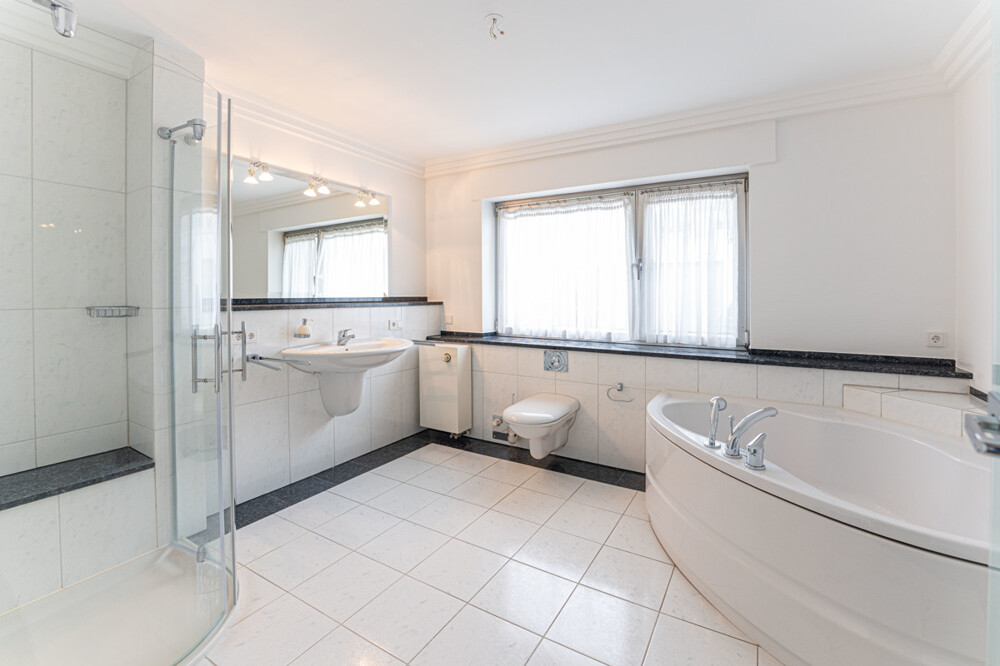 Zur Vermietung steht ein großzügiges Einfamilienhaus mit Einliegerwohnung in erster Rheinlage von Niederkassel-Rheidt. Das Haus besticht durch seine imposante Lage und bietet auf insgesamt ca. 285 m² Wohnfläche ein beeindruckendes Wohnambiente. Die Hauptwohnung verfügt über ca. 230 m² Wohnfläche. Die 2-Zimmer-Einliegerwohnung verfügt über zusätzliche ca. 55 m². Diese einzigartige Immobilie eignet sich sowohl als repräsentativer Wohnsitz als auch zur stilvollen Mischnutzung "Wohnen und Arbeiten". Die Immobilie ist frisch renoviert und befindet sich in einem guten Zustand. Über den Hauseingang gelangt man in die 2-Zimmer-Einliegerwohnung mit separater Küche und Tageslichtbad. Des Weiteren erschließt sich im Erdgeschoss die Nutzfläche mit Heizungsraum, Waschküche und weiteren Abstellräumen. Über das helle Treppenhaus erreicht man die Hauptwohneinheit im Ober- und Dachgeschoss. Die beiden Etagen sind mit einer repräsentativen innenliegenden Treppenanlage miteinander verbunden. Insgesamt verfügt die Hauptwohnung über einen großzügigen Wohn- und Essbereich mit angrenzender, aber geschlossener Küche, vier Schlafzimmer, separater Ankleide, zwei Badezimmer, ein Gäste-WC, ein Dachstudio sowie zwei Balkonen mit Rheinblick. Das Anwesen bietet drei Garagenstellplätze sowie mehrere Außenstellplätze vor den Garagen. Im Rahmen der durchgeführten Renovierung wurde die Alarmanlage erneuert und eine Klimatisierung eingebaut. Das fast 1.200 m² große Grundstück befindet sich direkt am Rheidter Damm und beherbergt neben einer Terrasse auch ein Gartenteich, ein Gartenhäuschen sowie eine geschmackvoll angelegte Grünanlage mit altem Baumbestand. Die Anmietung ist nach Absprache kurzfristig möglich.