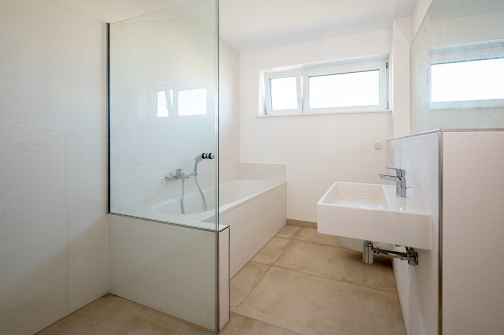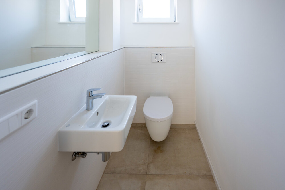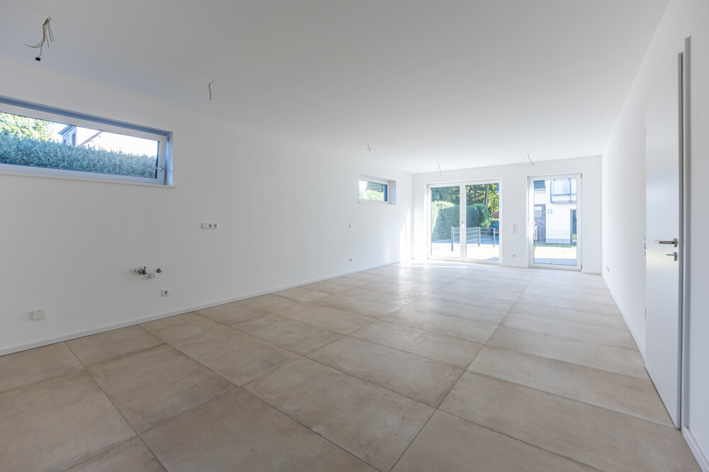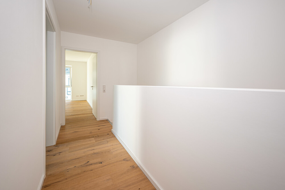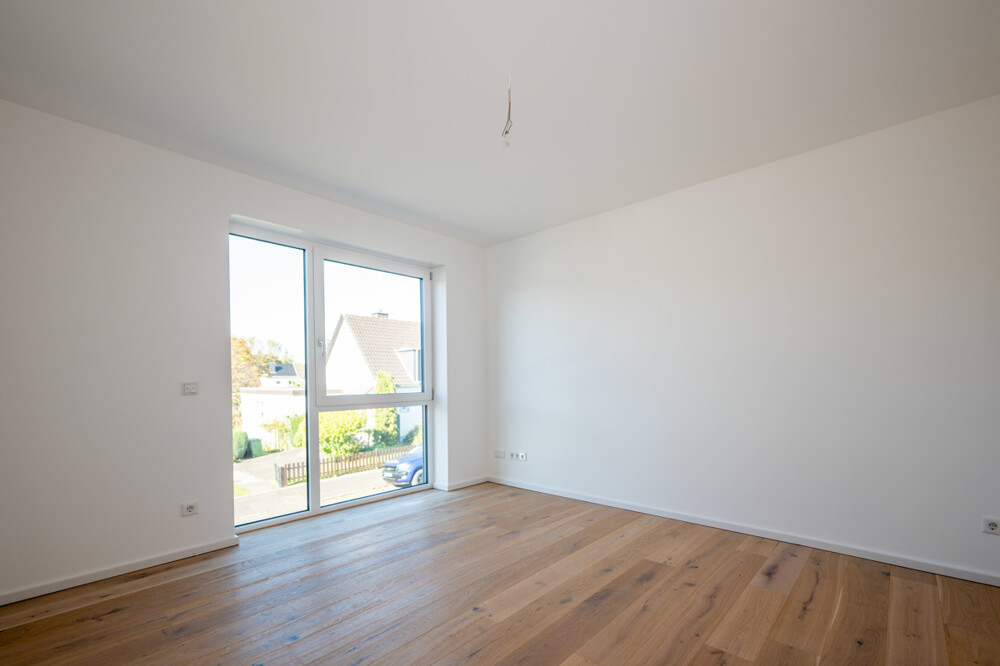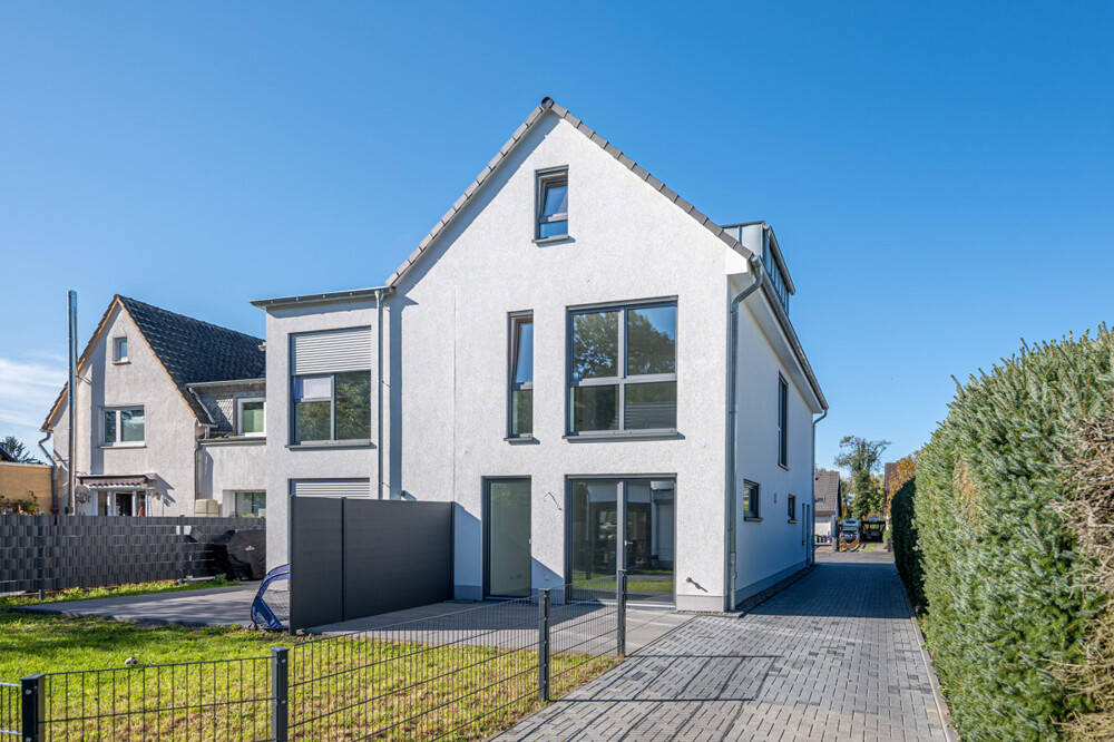 Diese Neubau-Immobilie im Siegburger Stadtteil Brückberg bietet Ihnen die perfekte Kombination aus zentraler Lage und ruhigem Wohnen. Es handelt sich hierbei um eine Wohneinheit (vergleichbar Doppelhaushälfte) in einem Zweiparteienhaus, welches in einer ruhigen Seitenstraße und fußläufig zum naheliegenden Wald gelegen ist. Die zwei Einheiten sind nach Wohnungseigentumsgesetz aufgeteilt. Die hier angebotene linke Haushälfte verfügt über insgesamt ca. 115 m² Wohnfläche sowie weitere ca. 30 m² Nutzfläche und teilt sich für Sie wie folgt auf: Im Erdgeschoss erreichen Sie über den Hauseingang die Diele, welche das helle Wohn- und Esszimmer mit der offenen Küche verbindet. Ebenfalls erschließt der zentrale Eingangsbereich das Gäste-WC sowie das Büro bzw. den Hauswirtschaftsraum (je nach Nutzung). Ein weiterer Abstellraum befindet sich unter der Treppe und bietet zusätzliche Stellfläche. Die ruhig gelegene Terrasse mit dem angrenzenden Gartenbereich erreichen Sie über das Wohnzimmer. Das Obergeschoss der Immobilie beherbergt des Weiteren insgesamt drei Schlafzimmer sowie das moderne Tageslichtbad mit Dusche und Badewanne. Im Dachgeschoss inkl. großzügiger Gaube befindet sich eine weitere Ausbaureserve. Diese Fläche kann in bis zu 3 Zimmer aufgeteilt werden. Aktuell sind bereits Wände verputzt, Decke gedämmt und Strom vorhanden, sodass sich diese Fläche weiter ausbauen lässt. Auf Wunsch kann dieser Ausbau für Sie organisiert und ausgeführt werden. Bei dieser Fläche handelt es sich nicht um Wohnfläche! Der hohe handwerklicher Standard in Verbindung mit Verwendung hochwertiger Materialien und modernem Design verleiht diesem Haus ein besonderes Erscheinungsbild, welches Ihren persönlichen Ansprüchen gerecht werden wird. Neben der hochwertigen Ausstattung wie z.B. Echtholzböden, großformatige Fliesen, Fußbodenheizung oder auch den elektrischen Rollläden, wird Sie auch der energetische Standard und die vollständige Fertigstellung mit z.B. einem PKW-Stellplatz begeistern.