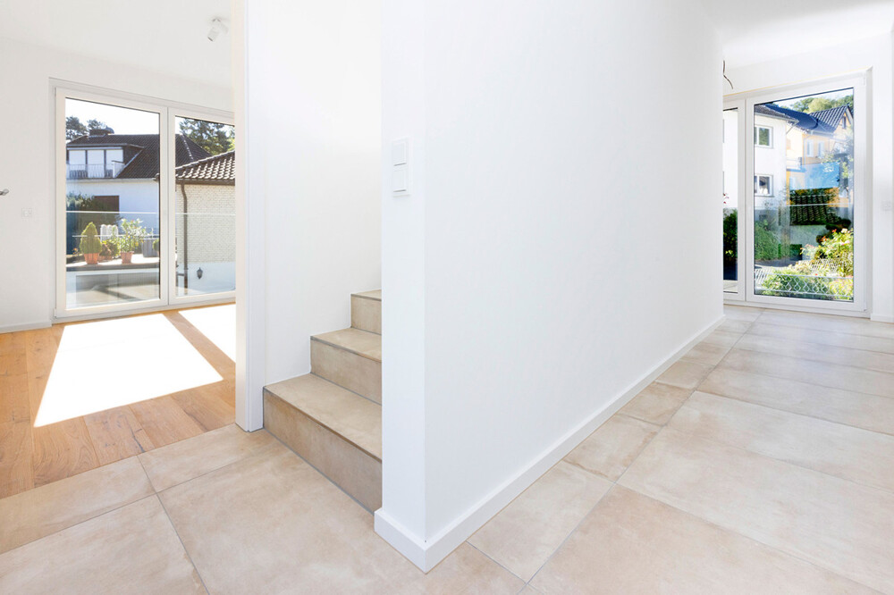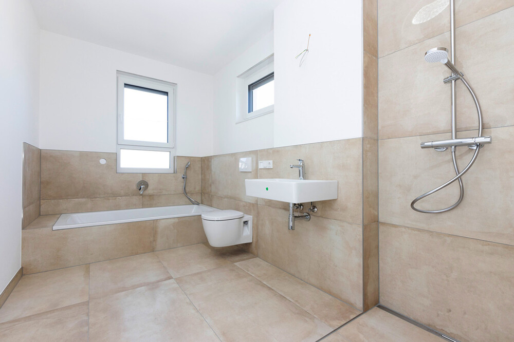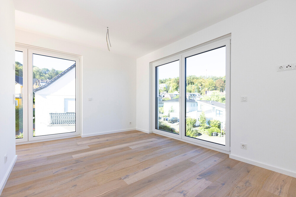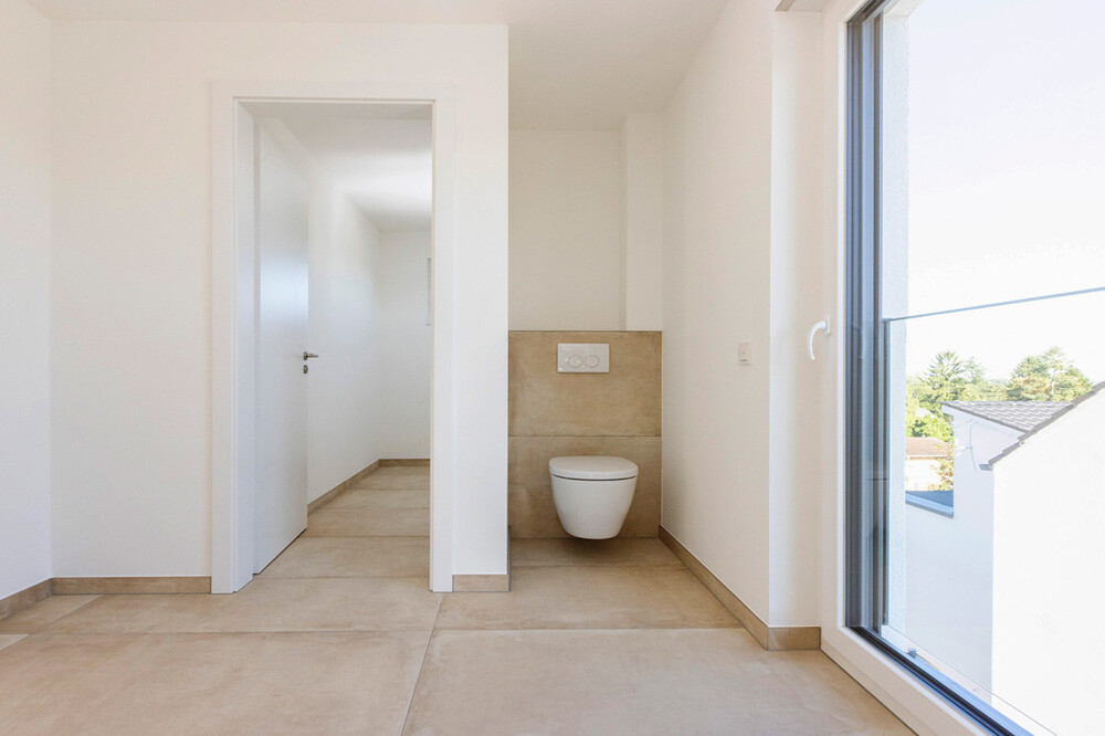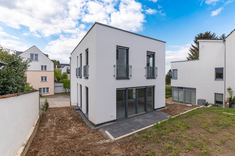 Im beschaulichen Bonner Stadtteil Muffendorf wird dieses freistehende Neubau-Einfamilienhaus gerade fertiggestellt. Ein hoher handwerklicher Standard in Verbindung mit Verwendung von hochwertigen Materialien und modernem Design verleiht diesem Haus ein ganz besonderes Erscheinungsbild, welches heute aber auch in Zukunft Ihren persönlichen Ansprüchen gerecht werden wird. Das hier angebotene Haus verfügt über ein großes Wohnzimmer mit anschließender, offener Küche und Eßbereich, einen Hauswirtschaftsraum, vier Schlafzimmer (eines davon im EG), mehrere Abstellflächen sowie drei Bäder und ein Gäste-WC. Eine Besonderheit ist das im Erdgeschoss befindliche Zimmer mit eigenem Bad, dass sich ggfs. als Gäste- oder Au-Pair-Apartment abtrennen lässt, hier ergeben sich vielfältige Möglichkeiten. Neben der hochwertigen Ausstattung wie z.B. Echtholzböden, großformatige Fliesen, Fußbodenheizung oder auch den elektrischen Rollläden, wird Sie der energetische Standard und die vollständige Fertigstellung inklusive Pkw-Garage begeistern. Konzeption: • modernes und hochwertig erstelltes Einfamilienhaus mit Wärmepumpe • Grundrissplanung mit modernem Raumkonzept • schlüsselfertige Gesamtausstattung • natürlich lichtdurchflutete, freundliche Räume durch überwiegend bodentiefe Fensterflächen • gartenseitige Terrasse und ein Freisitz vom Erdgeschossapartment aus • eigener, pflegeleichter Garten und eine Pkw-Garage und zusätzlichem Stellplatz davor • Grundstücksgröße ca. 240 m² • Einfamilienhaus mit einer Wohnfläche von ca. 178 m² Qualitätsmerkmale: • Fußbodenheizung • hochwertige Badezimmerausstattung • moderne Kunststofffenster mit 3-fach Wärmeschutzverglasung • elektrische Rollläden • hochwertige Parkettböden in sämtlichen Schlafzimmern • großformatige Fliesen im gesamten Erdgeschoss (Wohnen, Küche, Essen & Gäste-WC) • Wärmeversorgung mittels Wärmepumpe • LED Stufenbeleuchtung (Einbauspots) in Treppenbereichen • Pflasterarbeiten im Außenbereich