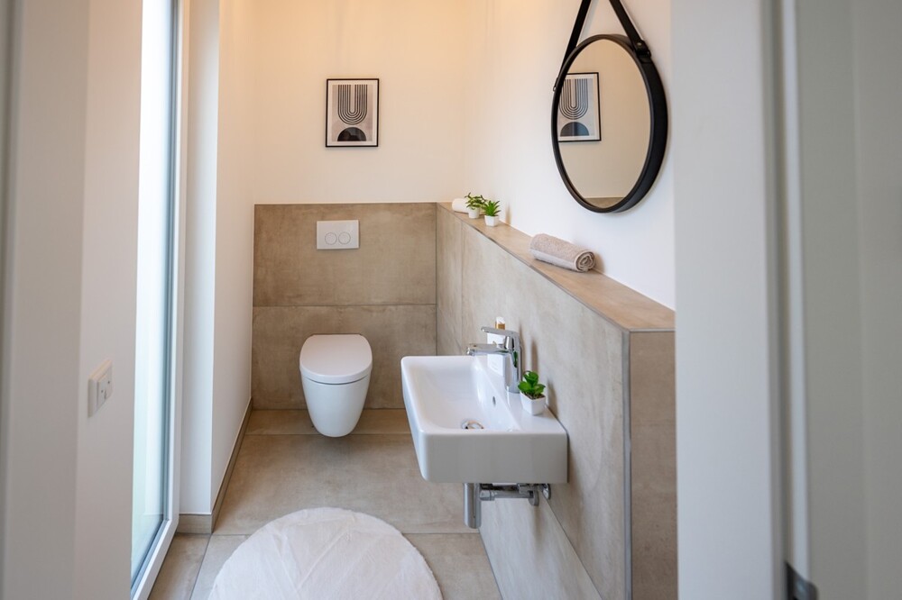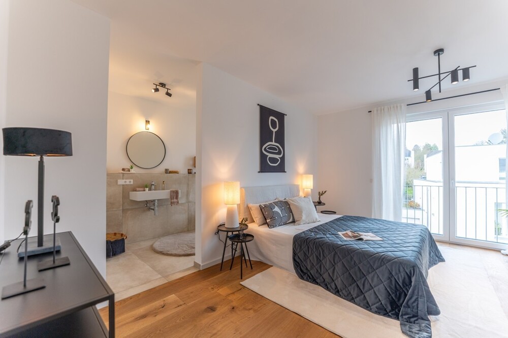 Modernes Neubau-Einfamilienhaus in Bonn-Muffendorf – Ihr Traum vom Wohnen! Entdecken Sie dieses freistehende Neubau-Einfamilienhaus im idyllischen Stadtteil Muffendorf in Bonn. Mit einer Wohnfläche von ca. 177 m² und einem ca. 247 m² großen Grundstück bietet das Haus ein modernes Design, hochwertige Ausstattung und ein durchdachtes Raumkonzept. Highlights sind u.a. die lichtdurchfluteten Räume, bodentiefe Fenster, ein offener Wohn-Essbereich, 4 Schlafzimmer (eines im EG mit eigenem Bad, ideal als Gäste- oder Au-Pair-Apartment), drei Bäder, ein Gäste-WC, sowie eine Terrasse und ein pflegeleichter Garten. Ausstattungsmerkmale: - Fußbodenheizung, Wärmepumpe, elektrische Rollläden - Echtholz-Parkett, großformatige Fliesen - Hochwertige Badezimmer - LED-Stufenbeleuchtung - Datenverkabelung in allen Schlafzimmern und im Wohnzimmer - Pkw-Garage mit zusätzlichem Stellplatz davor Energieeffizient, komfortabel und schlüsselfertig – Ihr neues Zuhause in ruhiger Lage mit bester Infrastruktur wartet auf Sie!