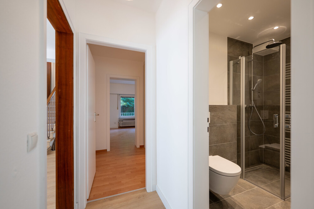 Modernisierte 4-Zimmer-Split-Level-Eigentumswohnung mit Schwimmbad & Sauna – sofort bezugsfrei! Diese großzügige und hochwertig renovierte 4-Zimmer-Eigentumswohnung im Split-Level-Stil überzeugt durch ihre durchdachte Raumaufteilung, moderne Ausstattung und ein besonderes Extra: ein ehemaliges Schwimmbad mit Sauna im Untergeschoss – ideal für einen privaten Wellnessbereich, ein Heimkino oder Fitnessraum. Die wichtigsten Merkmale im Überblick: Wohnfläche ca. 110 m², 4 Zimmer, Split-Level-Architektur Zusätzliche Nutzfläche ca. 80 m² im Untergeschoss (Schwimmbad, Sauna, Duschbad und Kellerraum mit Tageslicht!)